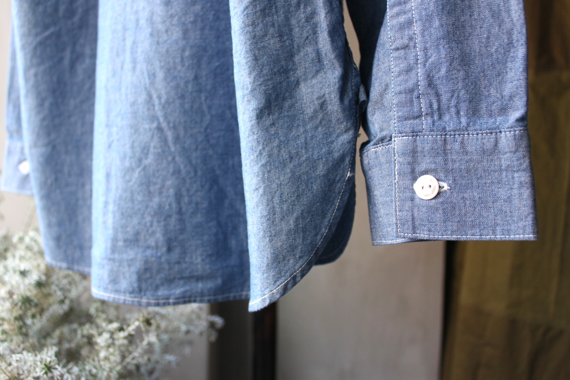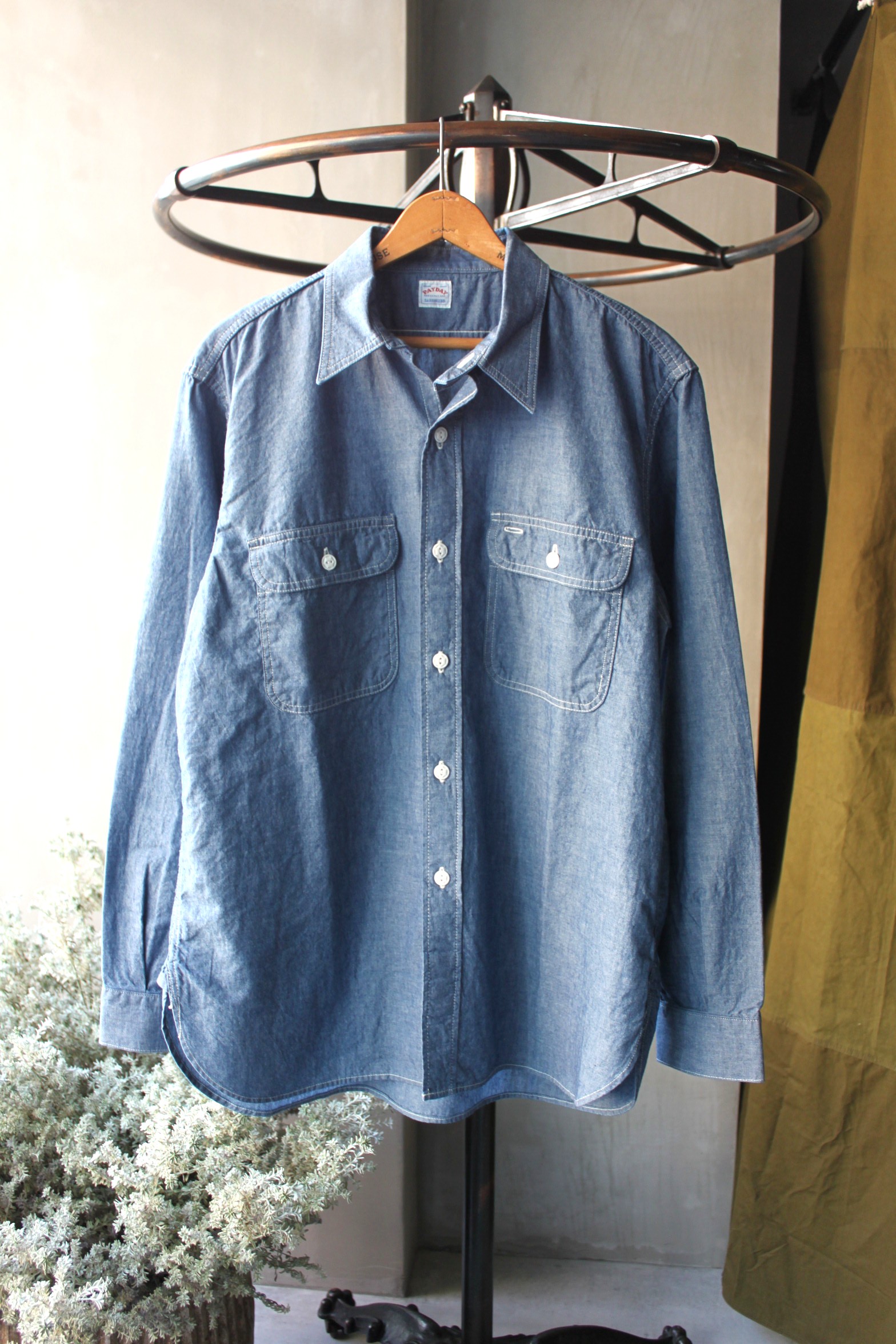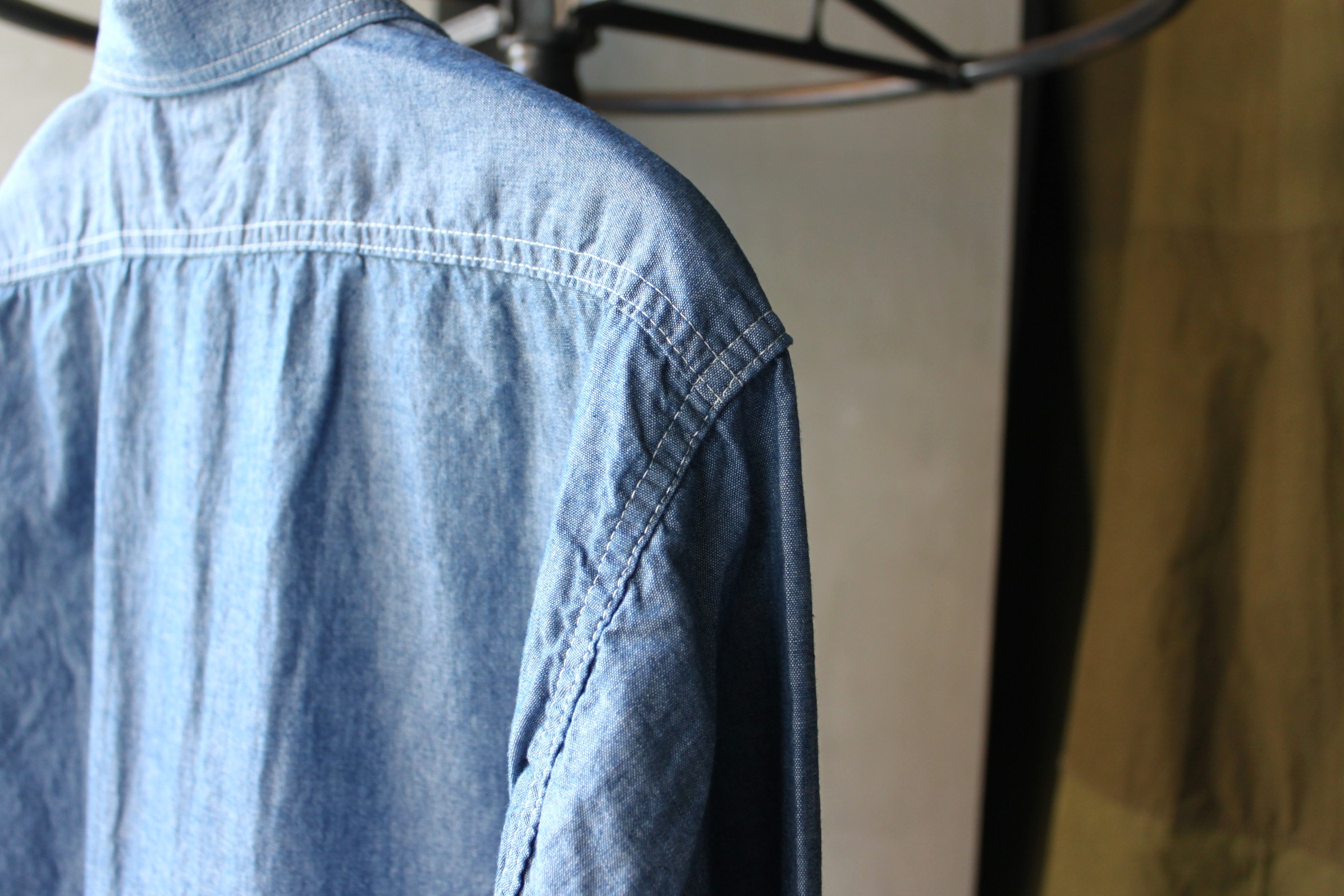 店頭ではアナウンスしておりましたが、残念ながらこの春夏シーズンからモデルチェンジされ廃盤となります。メーカー様のストック、主要サイズ全て仕入させて頂きましたので全サイズご用意しておりますが今後ご購入が難しくなりますのでまだお持ちで無い方は是非手に入れておいて下さいね。既にご愛用中の方も多いかと思いますがシャンブレーはどのブランドからもリリースされるぐらい定番のシャツですがここまでパーフェクトでずっとお店に置いておきたいと思える物は過去にもございませんでした。風合いの変化がとても良く、着用と洗いを繰り返し、デニムを育てている様な感覚で着て頂けます。1940年代に生産されていたシャンブレーシャツを素材、ディテールを現代風に落とし込み、少しパサッとした中にも柔らかさの残る絶妙な風合いまでも見事に再現し、特徴的なディテールでもあるチンストラップや襟のダブルステッチ、脇下の巻き縫い、両サイドのマチ、菱形の刻印が入る尿素ボタン、ユニオンチケット等も抜かり無し。アメリカに着ていくとそれはVintageか!?と間違われる程によく作り込まれています。様々なアイテムが値上がりする中で丁度良いプライスも魅力的でしょうか。良いバランスで着て頂けますのでお持ちで無い方は是非お試し下さい。