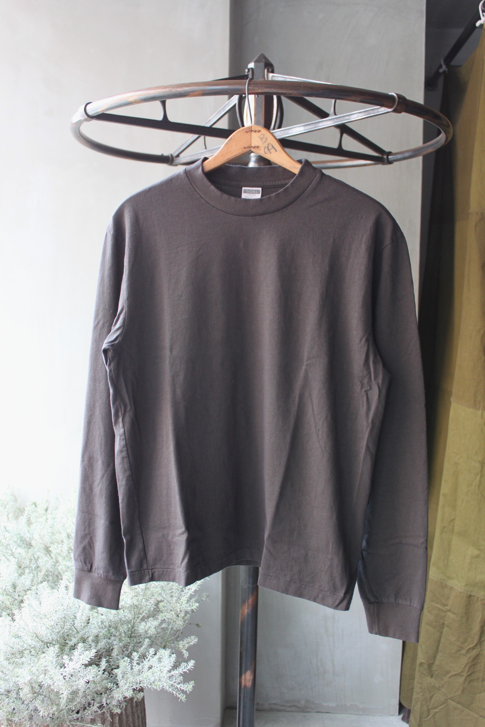 長らく完売しておりBlackをお待ちだった方も多くいらっしゃるのでは無いでしょうか。500枚程の販売実績もある定番のカットソーでGOALと言えばこの7部袖をイメージされる方もいらっしゃるかと思います。柔らかな肌触りの良いアメリカンコットンを使用し程よい厚みが心地良い5.6ozのコットンジャージーに編み立てられた素材感。薄すぎず、厚すぎず、癖になる着心地です。縫製糸もコットン100%に拘り、ウォッシュド加工による風合いも良い雰囲気ですね。撚れ難いバインディングネック、身幅は適度なゆとりを持たせ、着丈はすっきりとしたフリーダムスリーブ仕様。ラグランスリーブには無い曲線的な袖付けにより落ち着いた雰囲気に仕上がっています。数年前とは為替の状況、工場の賃金も変動しており販売価格の見直しが必要ですが、今回までは据え置きのプライスにしております。カリフォルニアのローカルメイドで¥5800+TAXはとてもお買い得感ございます…もう最後ですけどね。入荷後から店頭でもご好評頂いておりますのでお好きな方は是非。Online Shopにも掲載しておりますのでご利用下さいませ。