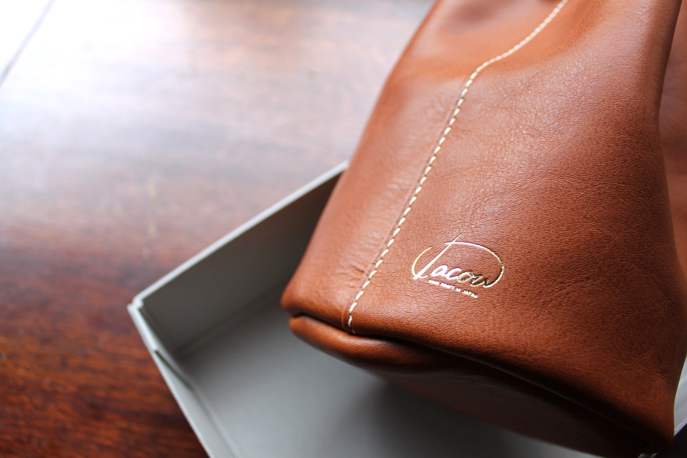 jacouを象徴する温かみあるとても良いBrownカラー、毎シーズンご好評頂くjacouの定番アイテムです。シーズンレスでご愛用頂けますがこれからのホリデーシーズンや少し肌寒い時期に特に相性が良いですね。Tauchi氏の趣味でもあるフライフィッシングのリールを入れるバッグをタウンユースにアレンジした巾着袋。柔らかなシボ革を用い丁寧に手縫いで仕上げられています。男性、女性問わず使って頂けますし、もう少し高くても良いのでは…と言う¥22000+TAXと言う手頃感もあるバッグです。財布、携帯、鍵等入れてどこか出掛けたくなりますね。前回買い逃してしまった方、ギフトにお考えの方、如何でしょうか。どうぞお早めに。
